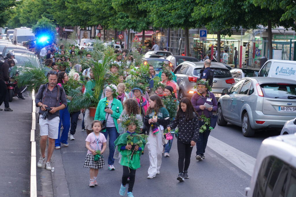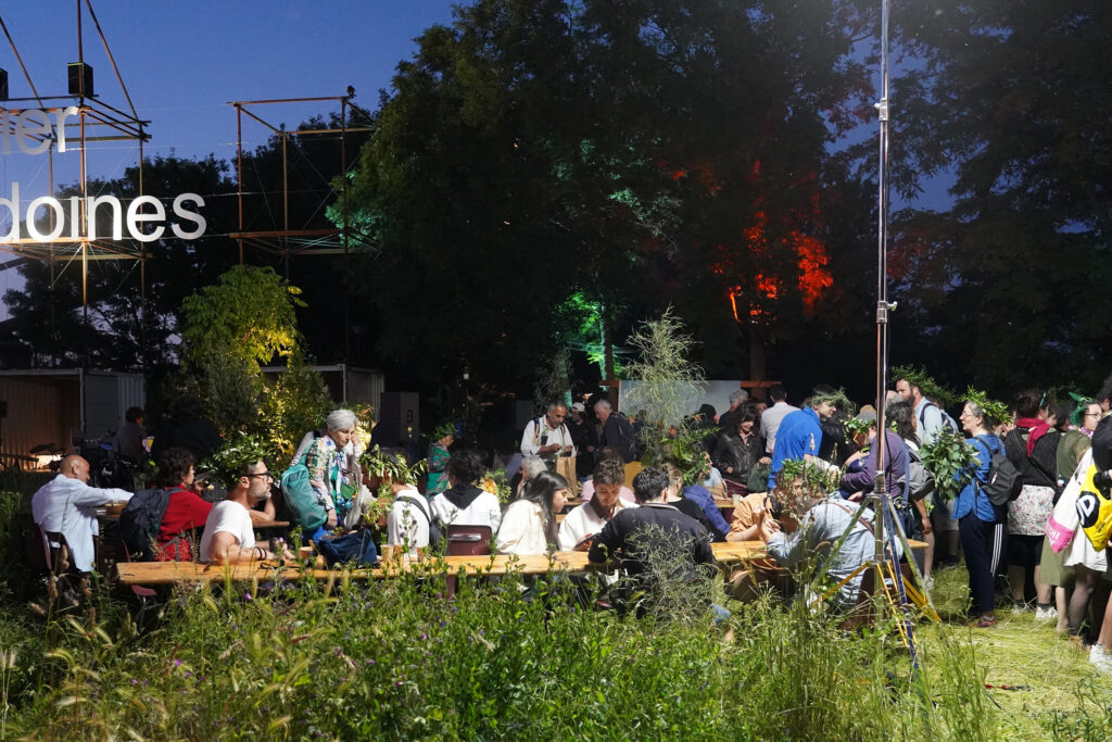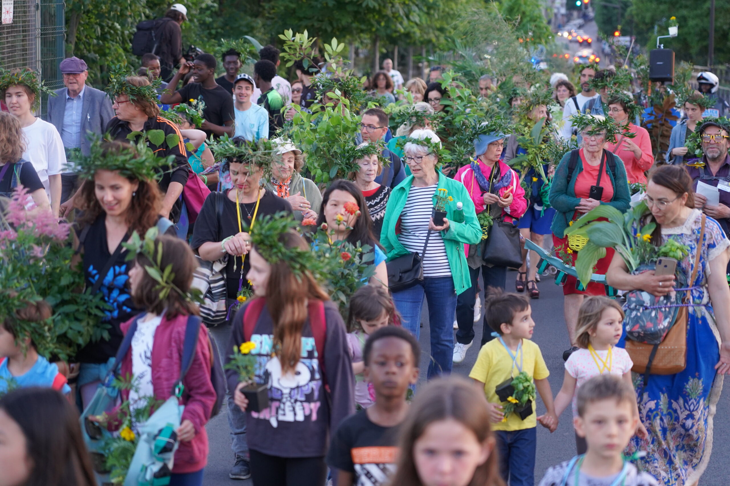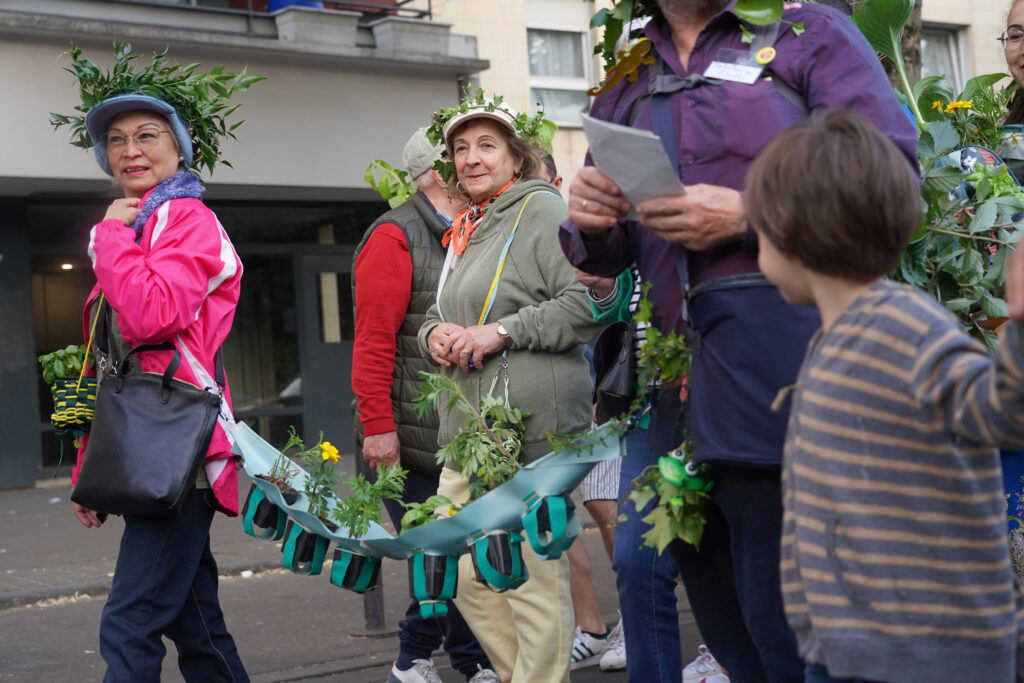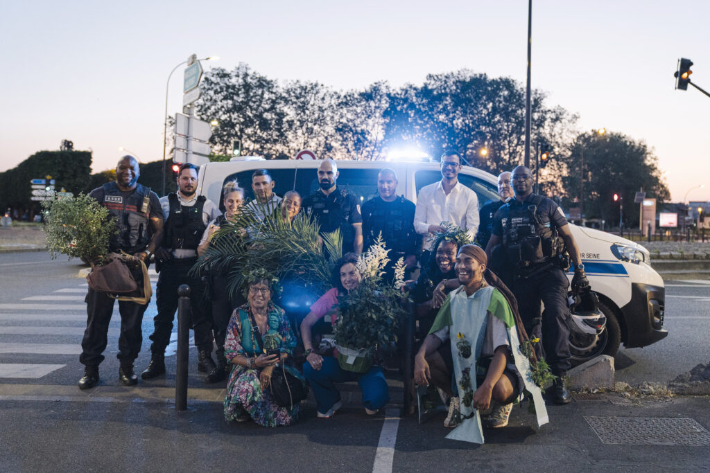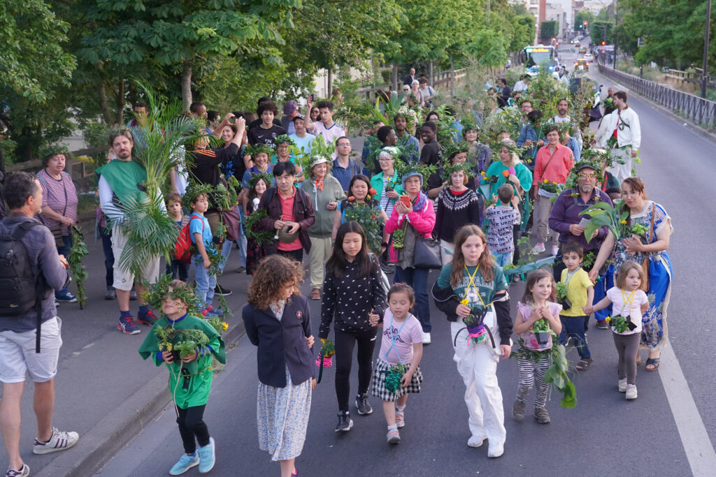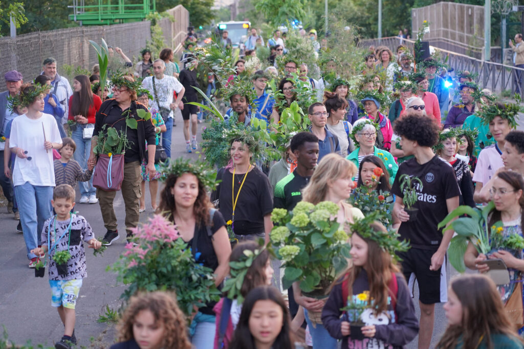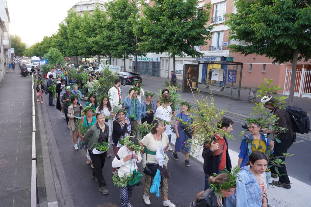 Nos reunimos en la Place du Marché y caminamos hacia el Sena para llegar a L’Atelier des Ardoines donde después se sembraron las plantas. El colectivo sonoro l’Emoi Sonneur nos acompañó durante la caminata y a nuestra llegada ofreció una composición sonora con música en vivo a modo de una «asamblea de los vivxs». Allí, disfrutamos también de una deliciosa comida hecha con insumos locales, bebidas, música y una sesión fotográfica de Marie Hudelot quien retrató a las personas y plantas participantes.