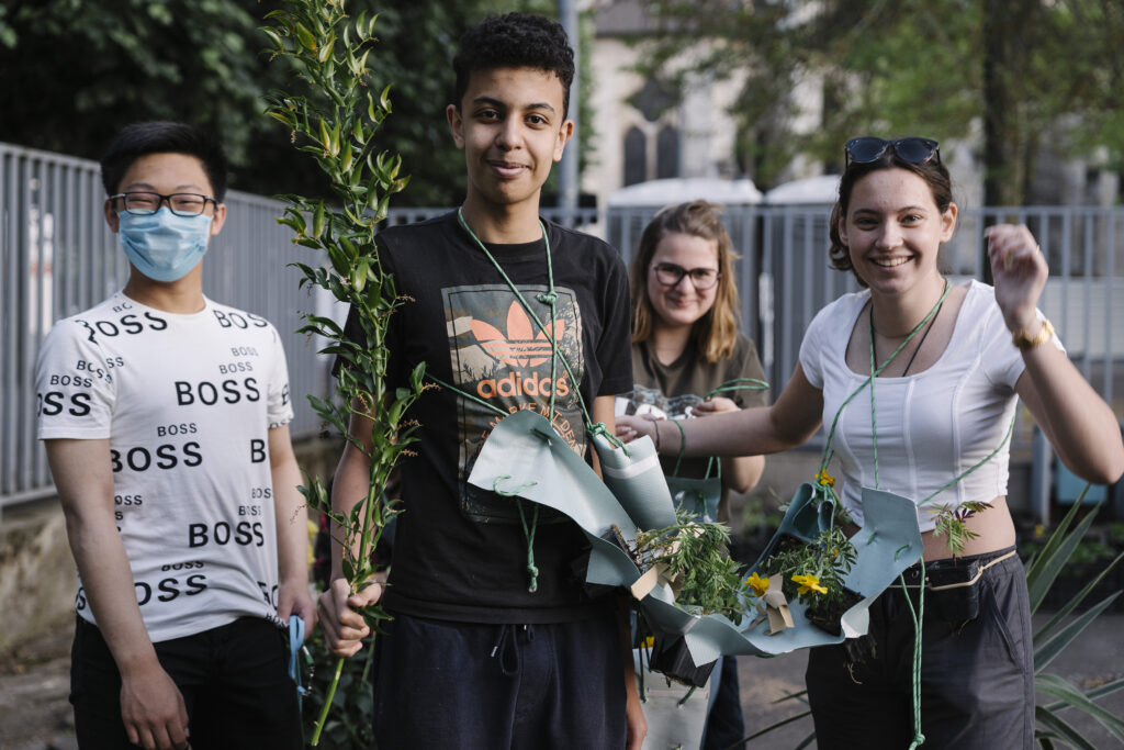 En preparación para la caminata, organizamos una serie de eventos en la galería Jean-Collet, que incluyeron talleres de “conectores planta-humano” con grupos de niñxs de la escuela local, talleres nocturnos con residentes locales y una charla sobre la agencia de las plantas.